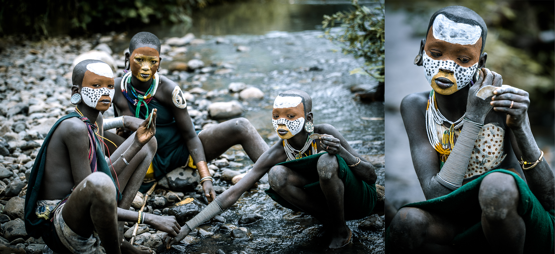 Au cœur de la Vallée de l'Omo en Ethiopie, les corps deviennent des toiles éphémères. Pigments naturels, gestes ancestraux et créativité instinctive se mêlent pour donner naissance à des portraits d'une intensité rare. Chaque visage peint, chaque regard habité, révèle une part d'âme et de mémoire, transformant l'instant fugace en éternité photographique. Proposées en photographies d'art , ces œuvres uniques sont réalisées en tirages limités, numérotés et signés , pour offrir à chaque collectionneur une pièce authentique et intemporelle.